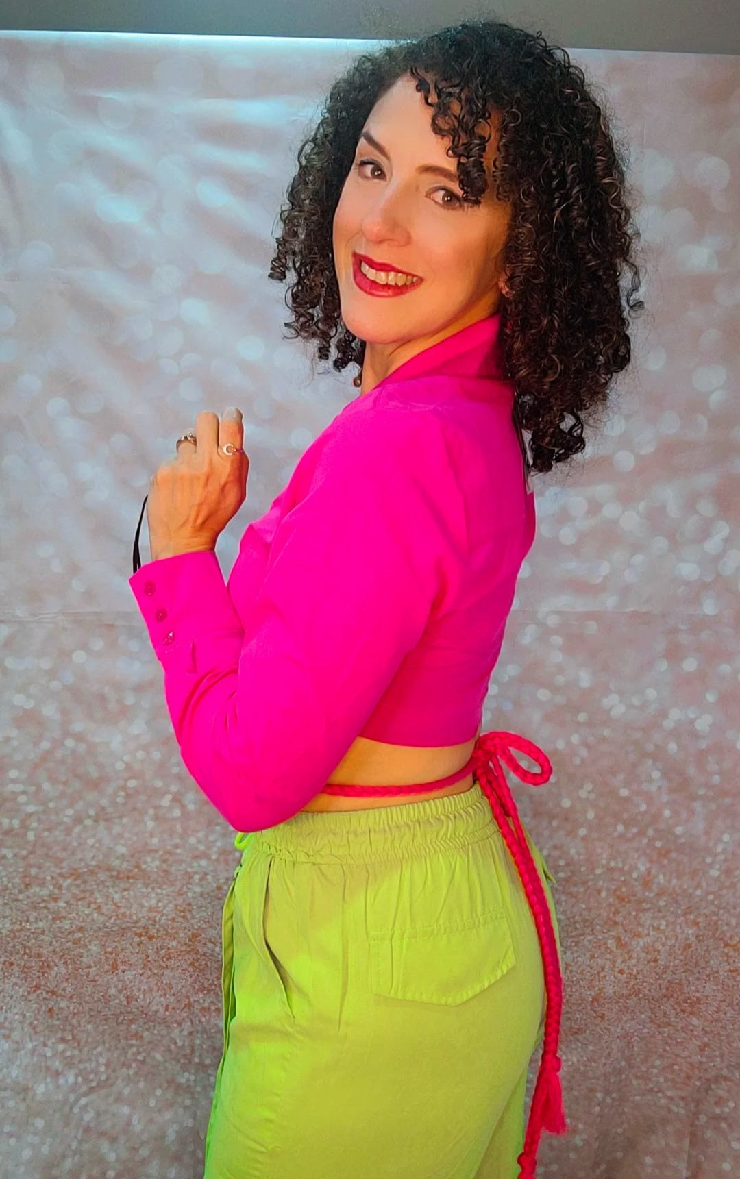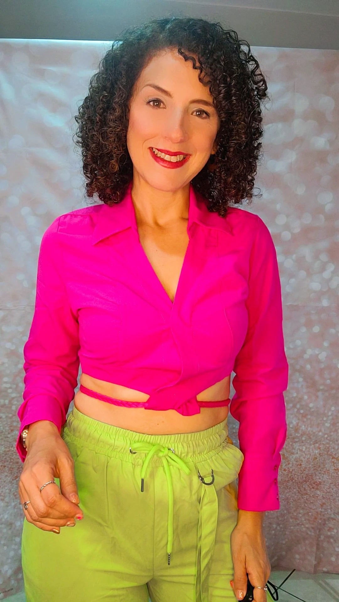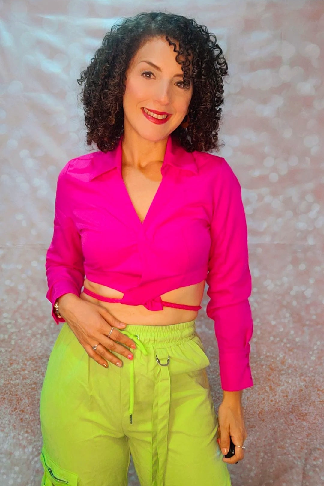 Top con mangas largas y amarre trenzado en el área de la cintura.