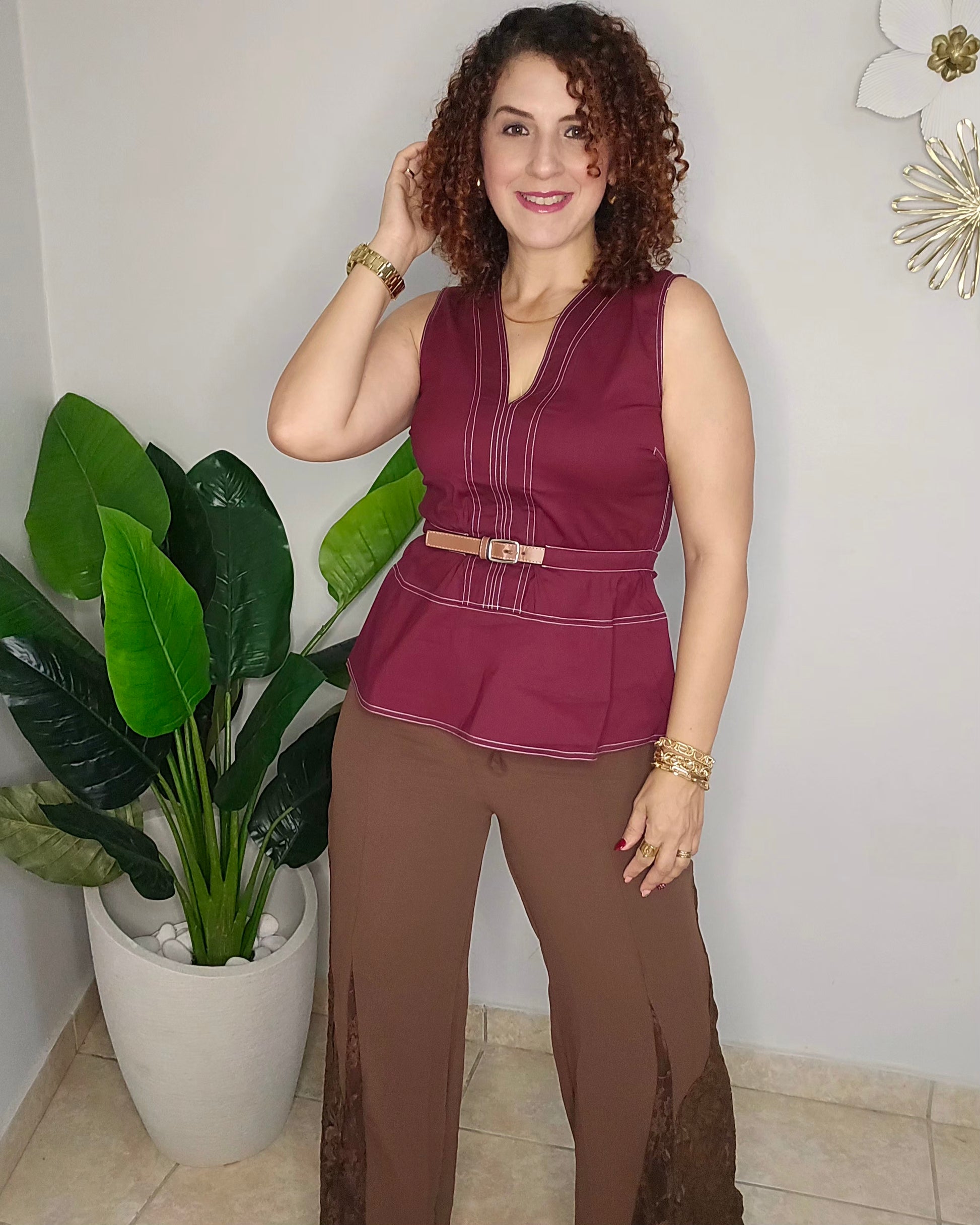 Nuestro V Neck Belted Peplum Top combina elegancia y estilo con su escote en “V”, corte peplum que acentúa la cintura y correa incluida para un ajuste perfecto. Su diseño favorece la silueta y añade un toque sofisticado a cualquier look.